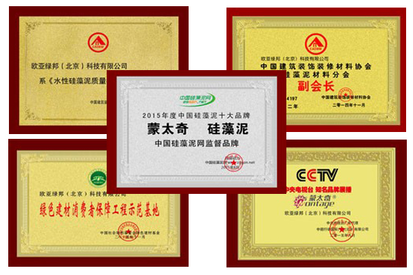 正式經(jīng)過多年來不懈努力,致使蒙太奇品牌獲得多個榮譽資質(zhì),如:硅藻泥行業(yè)十大品牌、硅藻泥材料分會副會長單位、《水性硅藻泥質(zhì)量標(biāo)準》參編單位、綠色建材消費者保障工程示范基地、CCTV展播品牌、《硅藻泥裝飾材料應(yīng)用技術(shù)規(guī)程》編制單位等。