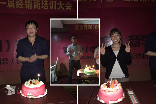【蘇總】:因為我做的是安徽蚌埠的市代,我的規(guī)劃是五河店已開,下一步就是把固鎮(zhèn)和懷遠(yuǎn)縣全部開起來,目前只有我蒙太奇敢在縣城開店。本來這次長沙的培訓(xùn)是去不了的,但是我覺得還是要給自己“充電”,也要給店內(nèi)人員灌輸點新的品牌知識,就把兩個店的店長帶去學(xué)習(xí)了一下。這次長沙培訓(xùn)會和去年的年會都讓我受益匪淺。同時這次也要謝謝方總,正好我是4月12生日,還在長沙過了一次不一樣的生日。